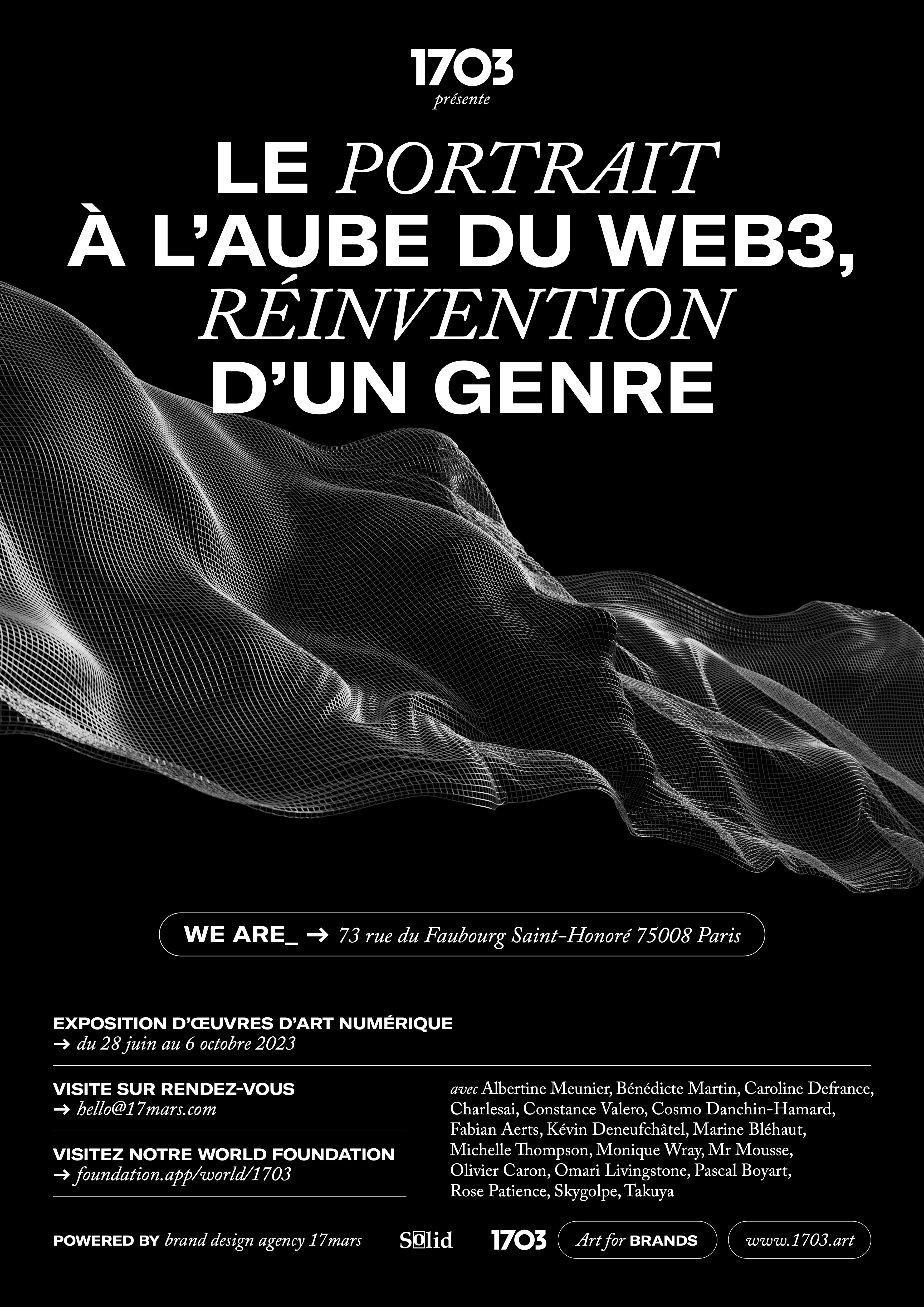 Conception of the digital art exhibition’s visual identity and signage at WeAre, in Paris.
